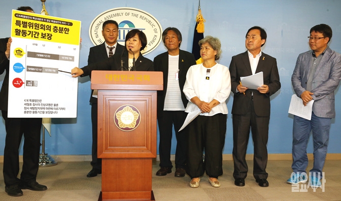 9일, 서울 여의도 국회 정론관에서 세월호 가족대책위원회 관계자들이 4·16특별법과 관련해 기자회견을 갖고 있다.