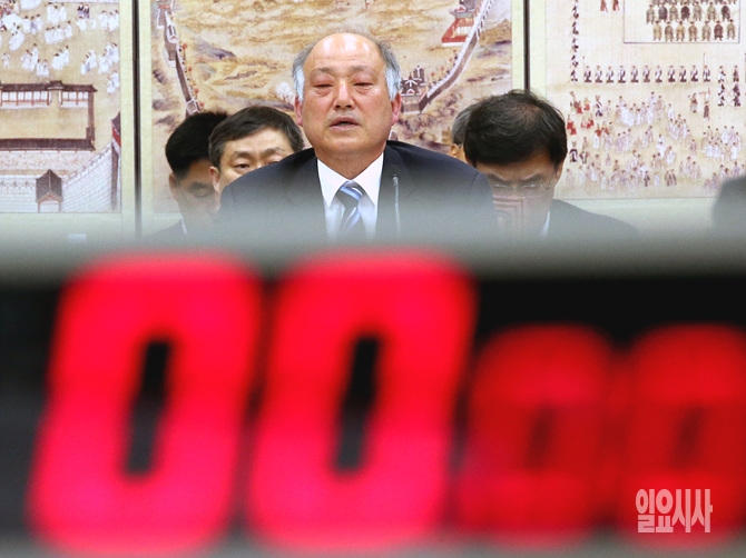 9일, 서울 여의도 국회에서 열린 김명수 교육부장관 겸 사회부총리 후보자 인사청문회에서 김 후보자가 고민에 빠져 있다.