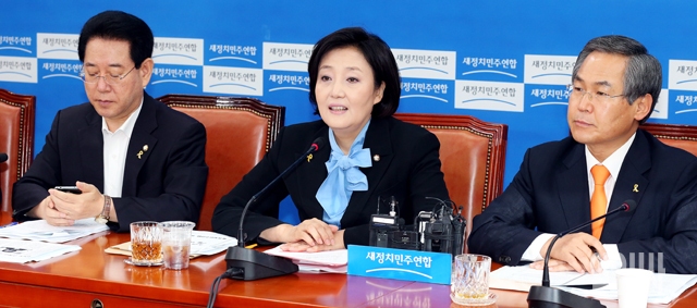 박영선 새정치민주연합 원내대표(가운데)가 10일 서울 여의도 국회에서 열린 정책조정회의에서 모두발언을 하고 있다.