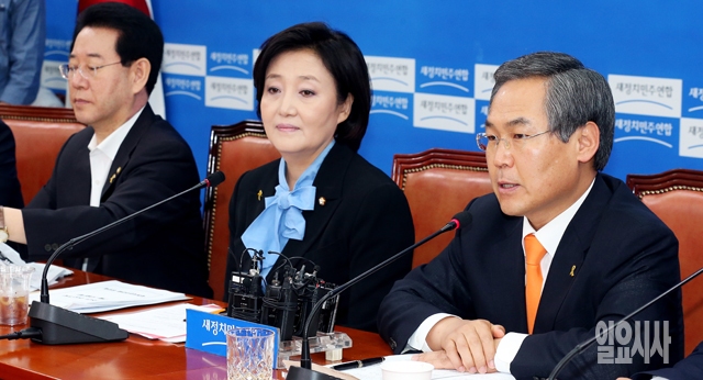 우윤근 새정치민주연합 정책위의장(맨 오른쪽)이 10일 서울 여의도 국회에서 열린 정책조정회의에서 모두발언을 하고 있다.