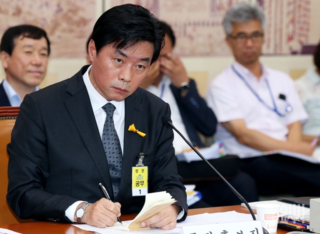정성근 문화체육관광부 장관 후보자가 10일 서울 여의도 국회 교육문화체육관광위원회에서 열린 인사청문회에서 의원들의 질의를 메모하고 있다.