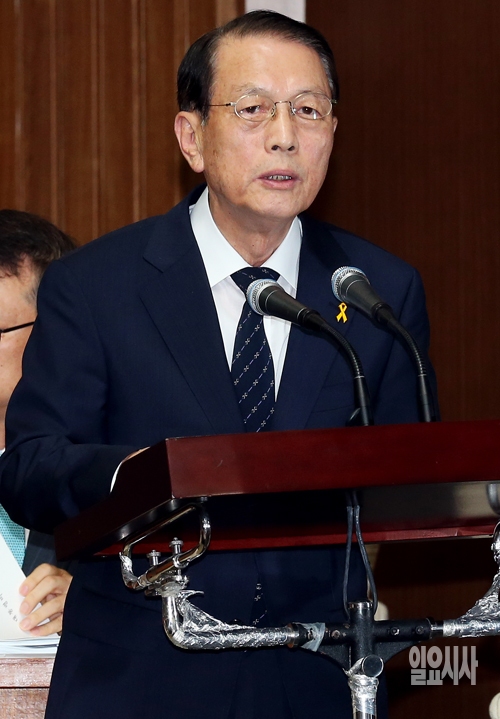 김기춘 청와대 대통령비서실장이 10일 서울 여의도 국회에서 세월호침몰사고진상규명국정조사 특별위원회 전체회의에서 기관보고를 하고 있다.