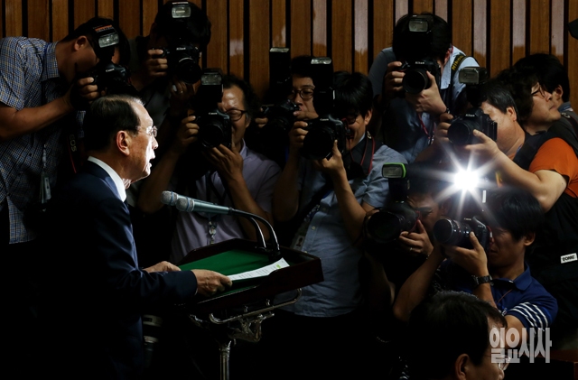 김기춘 청와대 대통령비서실장이 10일 서울 여의도 국회에서 세월호침몰사고진상규명국정조사 특별위원회 전체회의에서 기관보고를 하고 있다.