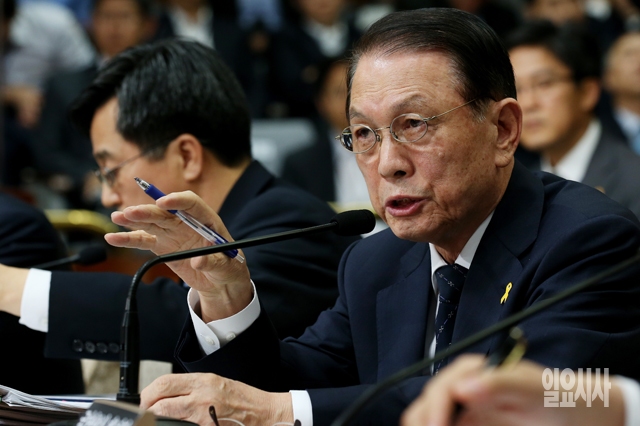 김기춘 청와대 대통령비서실장이 10일 서울 여의도 국회에서 세월호침몰사고진상규명국정조사 특별위원회 전체회의에서 의원들의 질의에 답변하고 있다.