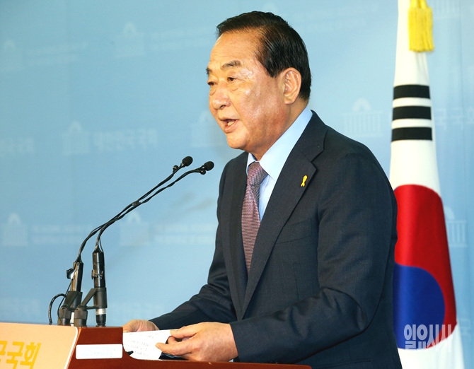 '새누리당 당권레이스'에 뛰어든 서청원 의원이 10일, 서울 여의도 국회정론관에서 전당대회 출마와 관련한 기자회견을 하고 있다.