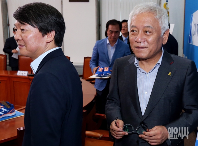김한길(오른쪽), 안철수 새정치민주연합 공동대표가 11일 서울 여의도 국회에서 열린  7·30 재보궐선거 공천장 수여식을 마친 뒤 나서고 있다.