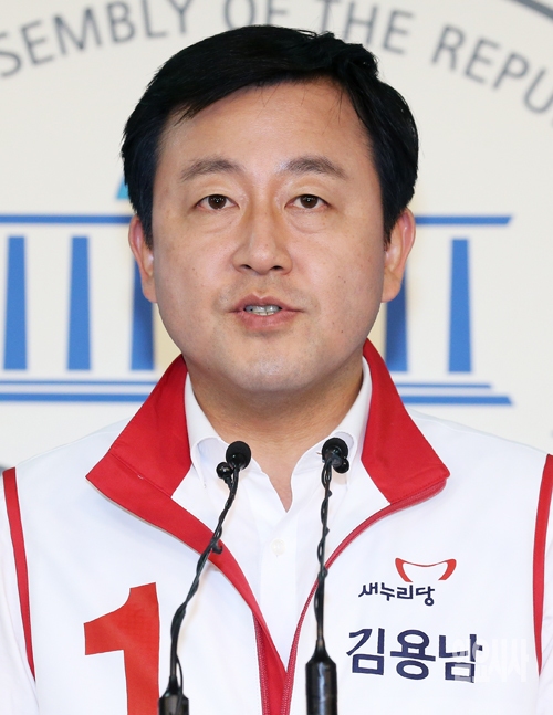 김용남 경기 수원병 후보가 11일 서울 여의도 국회 정론관에서 열린 7·30 재보궐선거 새누리당 수원지역 후보 합동 기자회견에서 발언을 하고 있다.