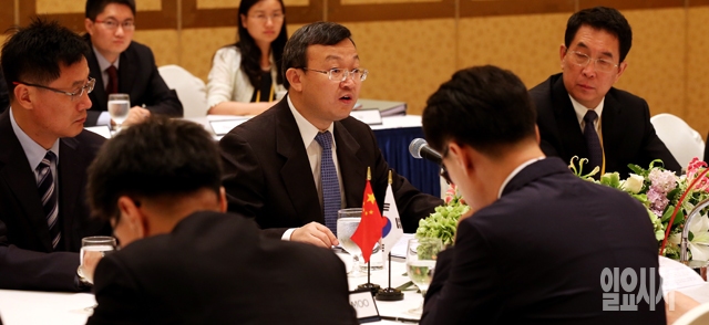 14일 서울 홍은동 그랜드힐튼호텔에서 열린 한·중 FTA 12차 협상에서 중국 측 수석대표 왕셔우원 상무부 부장조리가 발언을 하고 있다.