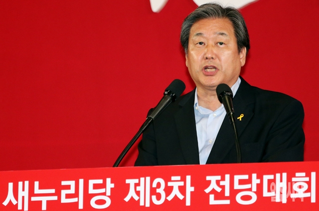 14일 서울 송파구 잠실실내체육관에서 열린 새누리당 대표최고위원 및 최고위원 선출을 위한 전당대회에서 당대표로 선출된 김무성 의원이 수락연설을 하고 있다.