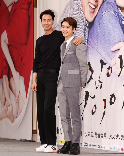 배우 조인성, 엑소 도경수가 15일 서울 논현동 임페리얼팰리스 호텔에서 열린 SBS드라마스페셜 '괜찮아 사랑이야'(연출 김규태, 극본 노희경) 제작발표회에서 포토타임을 갖고 있다.