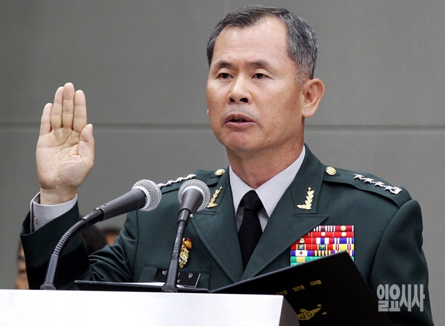 박선우 한미연합사 부사령관이 7일 서울 용산 국방부에서 열린 국회 국방위원회의 국정감사에서 증인선서를 하고 있다.