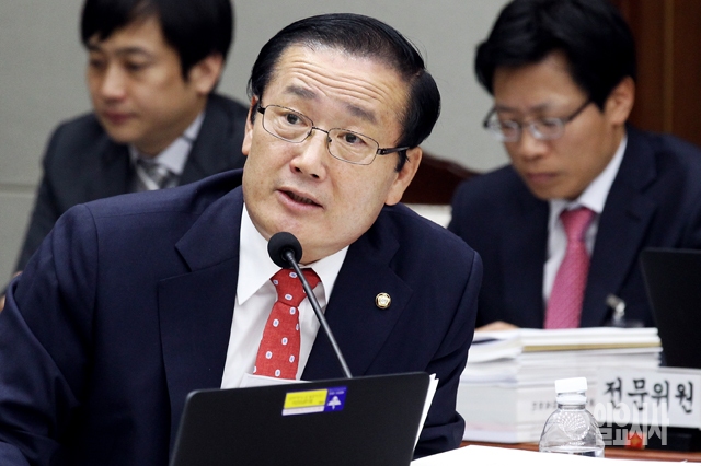 새누리당 김성찬 의원이 7일 서울 용산 국방부에서 열린 국회 국방위원회의 국정감사에서 한민구 국방부 장관에게 질의를 하고 있다.
