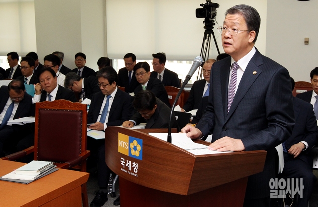 임환수 국세청장이 8일 서울 수송동 국세청에서 열린 국회 기획재정위원회의 국정감사에서 업무보고를 하고 있다.