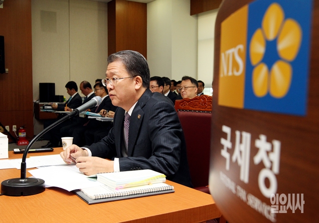 임환수 국세청장이 8일 서울 수송동 국세청에서 열린 국회 기획재정위원회의 국정감사에서 의원들의 질의에 답하고 있다.