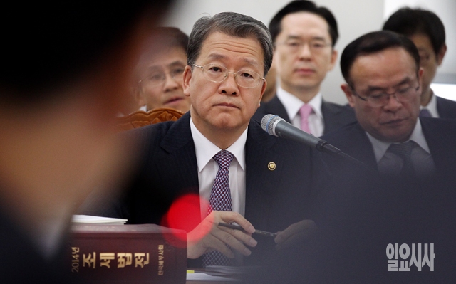 임환수 국세청장이 8일 서울 수송동 국세청에서 열린 국회 기획재정위원회의 국정감사에서 의원들의 질의를 경청하고 있다.