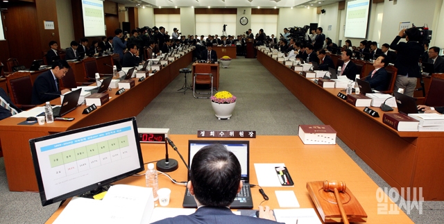 임환수 국세청장을 비롯한 참석자들이 8일 서울 수송동 국세청에서 열린 국회 기획재정위원회의 국정감사를 받고 있다.