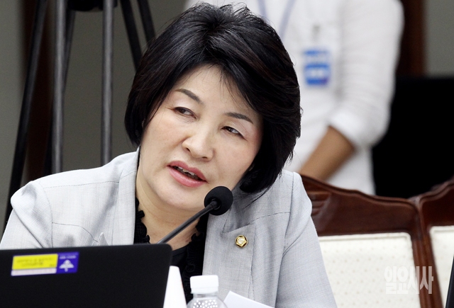 새누리당 손인춘 의원이 8일 서울 용산 국방부에서 열린 국회 국방위원회의 국정감사에서 질의를 하고 있다.