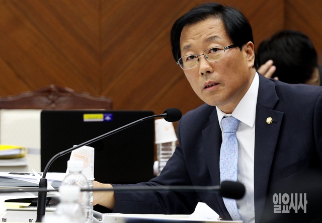 새정치민주연합 윤후덕 의원이 8일 서울 용산 국방부에서 열린 국회 국방위원회의 국정감사에서 질의를 하고 있다.