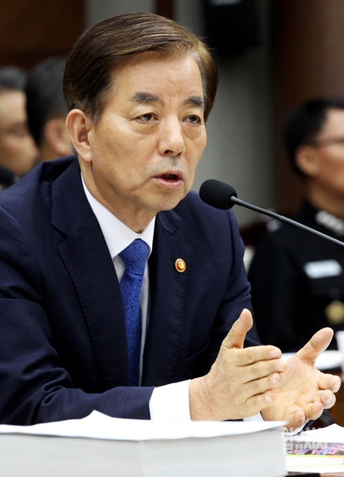한민구 국방부 장관이 8일 서울 용산 국방부에서 열린 국회 국방위원회의 국정감사에서 의원들의 질의에 답하고 있다.