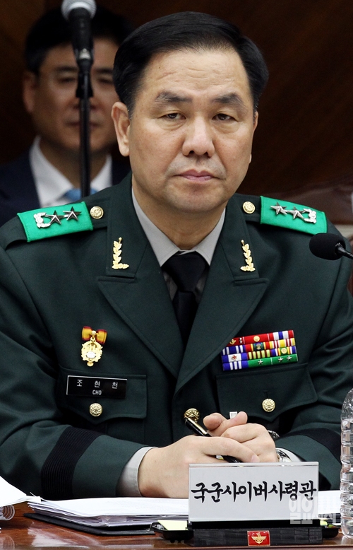 조현천 국군사이버사령관이 8일 서울 용산 국방부에서 열린 국회 국방위원회의 국정감사에서 의원들의 질의를 경청하고 있다. 한편 지난 7일 조 사령관은 이번 후반기 장성 진급 인사에서 신임 기무사령관으로 진급했다.