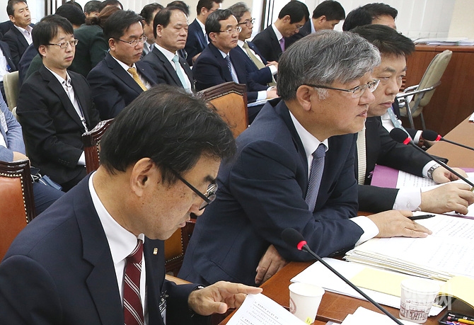 8일 오후 서울 여의도 국회 미래창조과학방송통신위원회 회의실에서 열린 원자력안전위원회 등에 대한 2014 국정감사에서 이은철 원자력안전위원회 위원장이 의원들의 질의를 경청하고 있다.