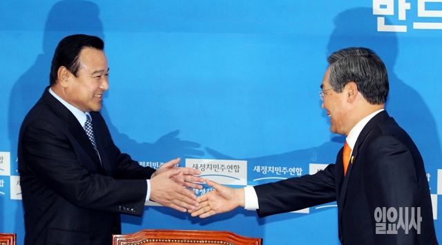 [포토] 인사하는 이완구-우윤근