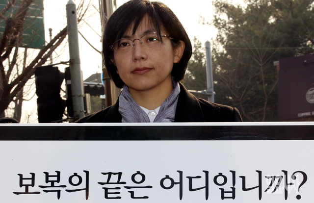 구 통합진보당 이정희 전 대표가 24일 서울 청운동 주민센터 앞에서 기자회견을 열고 검찰이 당원들에게 국가보안법 적용을 검토하는 것에 대한 입장을 밝히고 있다.
