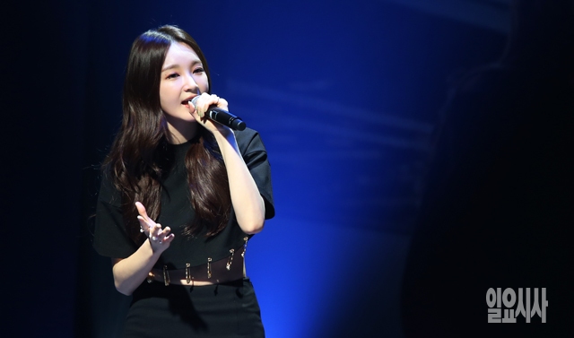 여성 보컬 듀오 다비치의 강민경이 21일 서울 청담동 일지아트홀에서 열린 새 미니앨범 '다비치 허그(DAVICHI HUG)' 발매 기념 쇼케이스에서 멋진 무대를 선보이고 있다.