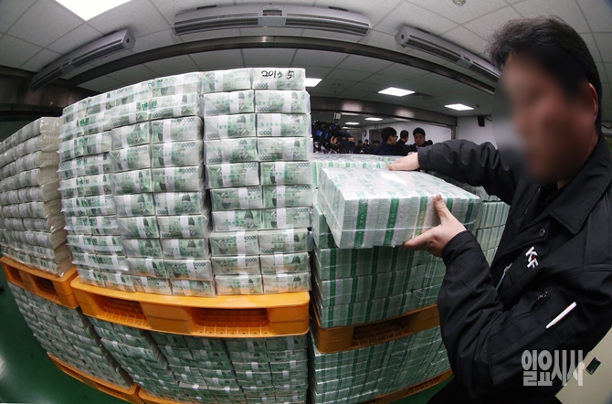 설을 일주일 앞둔 12일 오전 서울 중구 한국은행 본점에서 관계자들이 각 시중은행으로 보낼 설 자금을 이송차량으로 옮기고 있다.