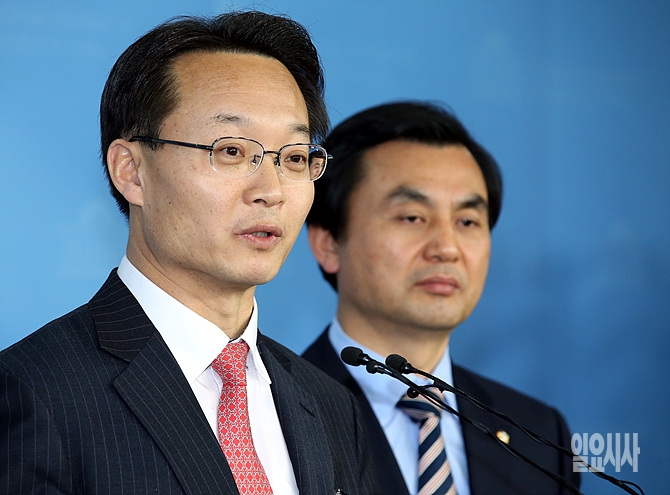12일, 서울 여의도 국회 정론관에서 새누리당 조해진 원내수석부대표가 이완구 국무총리 후보자 인사청문 보고서 채택 관련 합의사항 브리핑을 하고 있다.