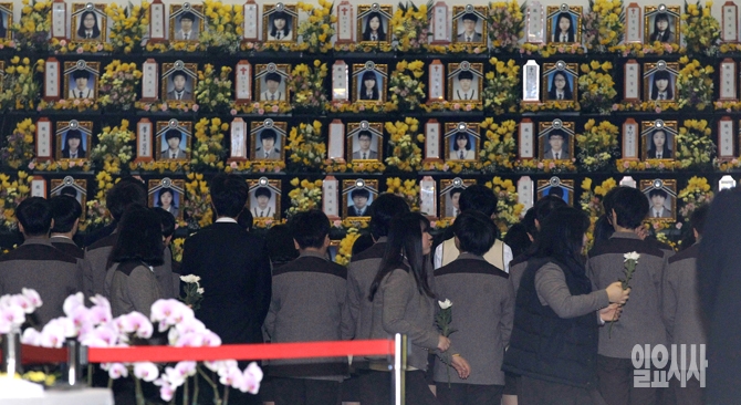 [포토] 희생자 영정 앞에선 단원고 학생들