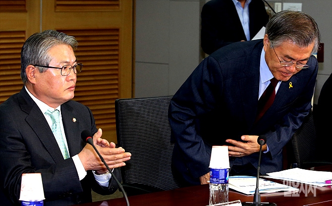 12일, 서울 여의도 국회 의원회관 제1세미나실에서 '현금개혁 키워드 '50'과 '20'의 쟁점과 방향 긴급 토론회 직전, 문재인 새정치민주연합 대표가 인사를 하고 있다.