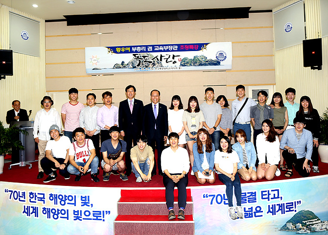 [일요시사 사회2팀] 김해웅 기자 = 황우여 부총리 겸 교육부장관이 4일, 한국해양대학교(총장 박한일)를 방문, 대학교육에 관한 현장 목소리를 청취하고 ‘독도사랑’을 주제로 특강을 펼쳤다.