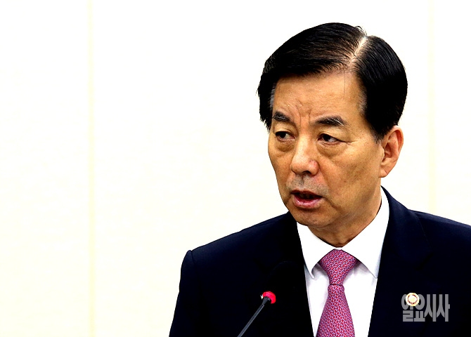 13일, 서울 여의도 국회 국방위원회 회의실에서 열린 국방위 전체회의에 앞서 한민구 국방부장관이 업무보고를 하고 있다.