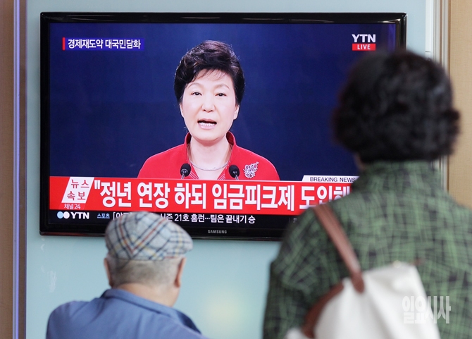 6일 오전 서울역 대합실에서 시민들이 박근혜 대통령 대국민담화 방송을 보고 있다.