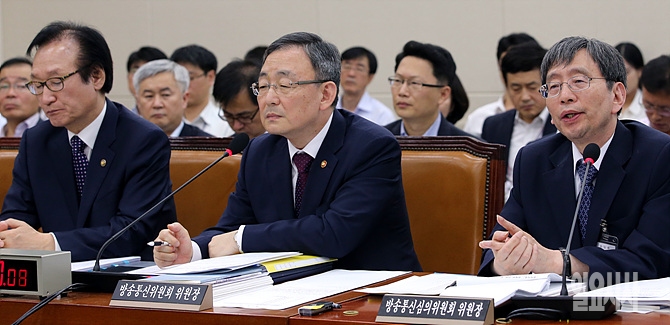10일, 서울 여의도 국회서 열린 미래창조과학부 국정감사에서 박효종 방송통신심의위원장이 답변하고 있다.