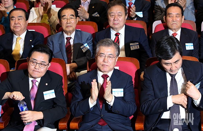 16일, 서울 여의도 국회 의원회관서 열린 새정치민주연합 제2차 중앙위원회 도중 문재인 대표가 박수를 치고 있다.