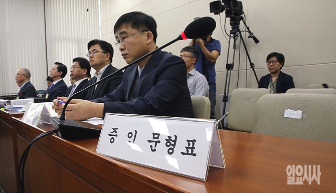 21일, 서울 여의도 국회 보건복지위원회 회의실서 열린 보건복지부 등에 대한 국정감사장에 증인으로 신청된 문형표 전 보건복지부장관이 불참해 명패만 덩그러니 놓여져 있다.