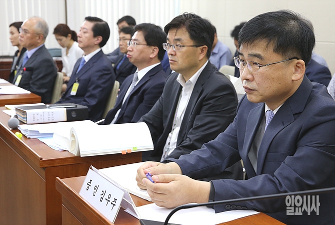 21일, 서울 여의도 국회 보건복지위원회 회의실서 열린 보건복지부 등에 대한 국정감사 도중 김우주 감역학회장이 의원들의 질의를 듣고 있다.