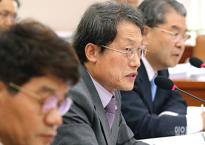 21일, 서울 여의도 국회 교육문화체육관광위원회 회의실서 열린 국회 교문위 국정감사에서 조희연 서울시교육감이 의원들의 질의에 답변하고 있다.