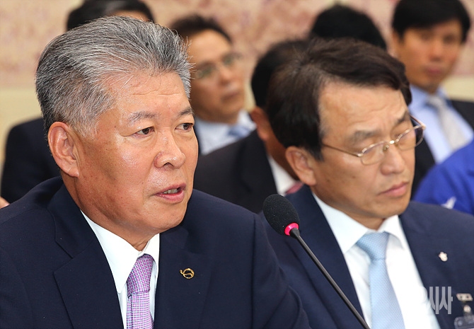 22일, 서울 여의도 국회 교육문화체육관광위원회 회의실에서 열린 국민체육진흥공단 등에 대한 국정감사에서 김성태 태권도진흥재단 이사장이 의원들의 질의에 답변하고 있다.