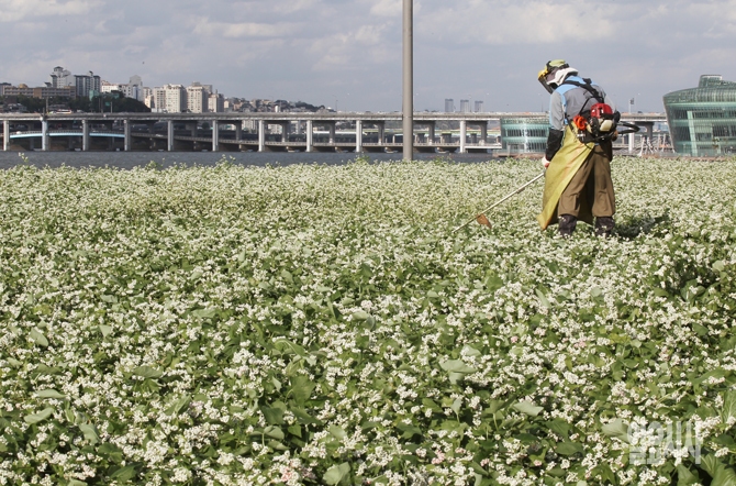 2015 한강 서래섬 메밀꽃 축제가 하루 앞으로 다가온 가운데 2일 오후 서울 반포한강공원 서래섬에서 축제준비가 한창 진행되고 있다.