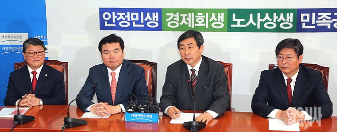 5일, 서울 여의도 국회서 원유철-이종걸 여야 원내대표 및 조원진-이춘석 원내수석부대표가 농어촌지역 선거구 획정 관련 회동을 갖고 있는 가운데, 이 원내대표가 발언하고 있다.