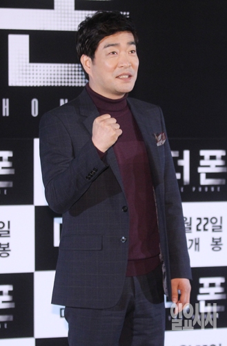 배우 손현주가 12일 오후 서울 용산구 CGV용산에서 열린 한국영화 <더 폰>의 언론시사회에서 포토타임을 갖고 있다.