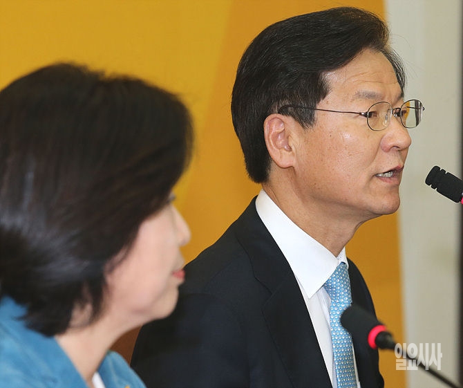 15일, 서울 여의도 국회에서 정의당 심상정 대표를 찾아간 무소속 천정배 의원이 발언을 하고 있다.