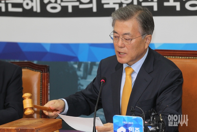 문재인 새정치민주연합 대표가 16일 오전 서울 여의도 국회에서 열린 새정치민주연합 확대간부회의에서 회의 시작을 알리고 있다.