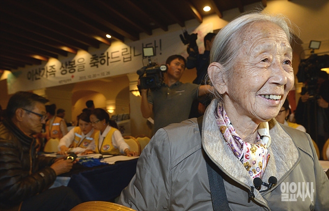 남북이산가족 상봉 행사를 하루 앞둔 19일, 이산가족 상봉 참가자들이 강원도 속초의 한화리조트에서 잠시 기쁜 표정을 하고 있다. (사진공동취재단)