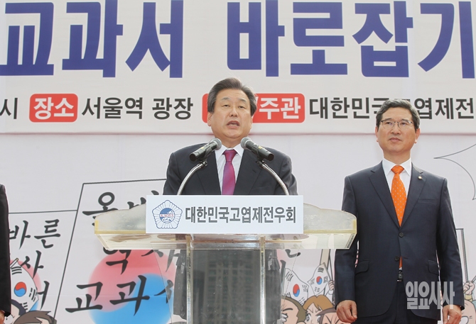 김무성 새누리당 대표가 22일 오후 서울역 광장에서 열린 좌편향 역사교과서 바로잡기 국민대회에서 발언을 하고 있다.