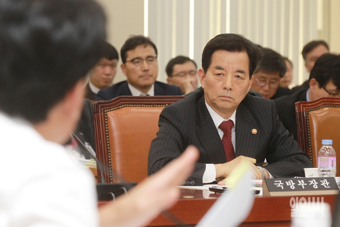 한민구 국방부 장관이 17일 오후 서울 여의도 국회에서 열린 한국형 전투기(KF-X) 사업 관련 국회 국방위원회 전체회의에서 여야 의원들의 질의를 듣고 있다.