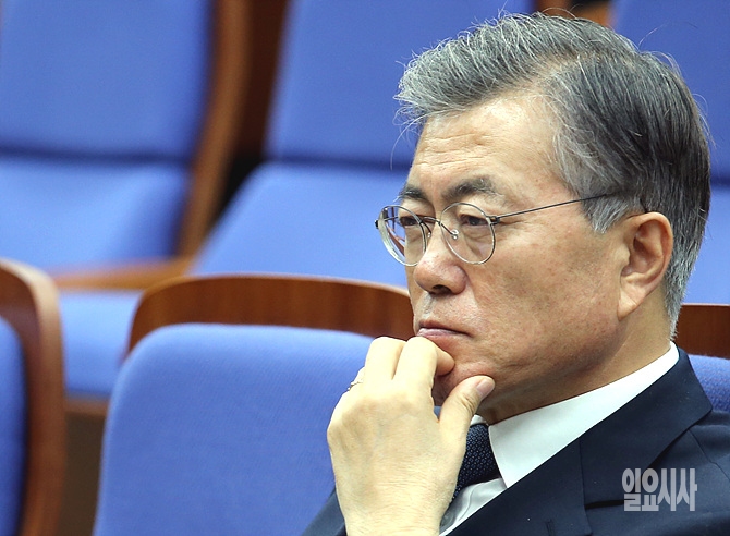2일, 서울 여의도 국회서 새정치민주연합 긴급 의원총회가 열린 가운데 문재인 대표가 잠시 생각에 잠겨 있다.